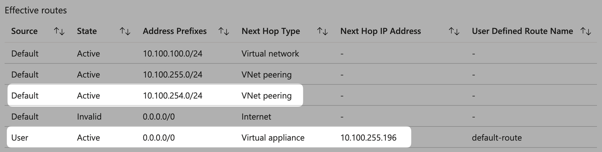 If there are routes from VNet Peering, it will become like this: