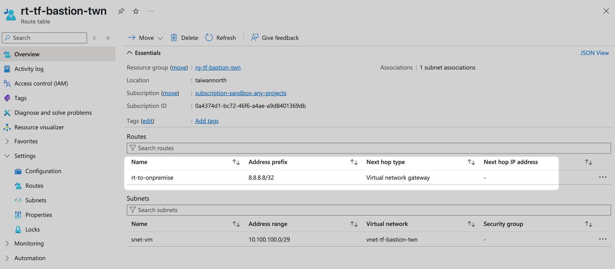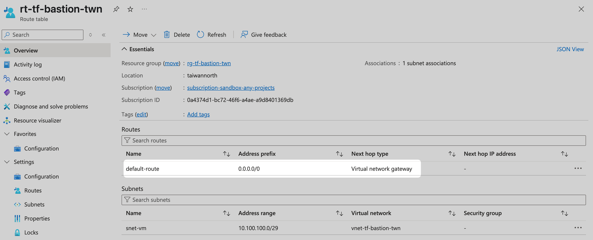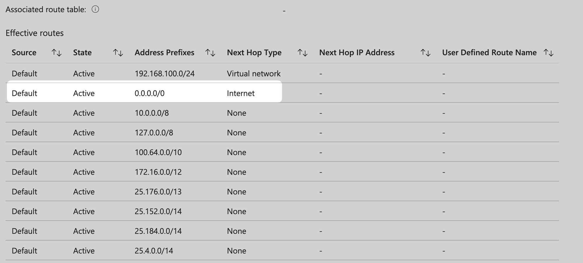 | default-route | 0.0.0.0/0 | Virtual Network Gateway | - |