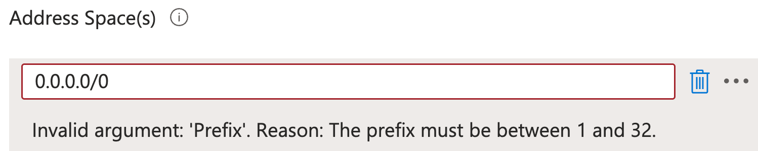 Due to "The prefix must be between 1 and 32", 0 cannnot be entered