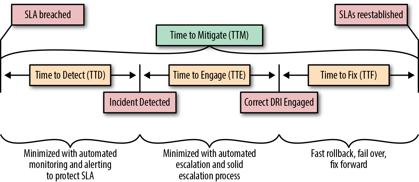 | TTD | Time to Detect | (Incident Detection Time) - (Incident Impact Start Time, SLA breached) | 發現事件總消耗時間 |