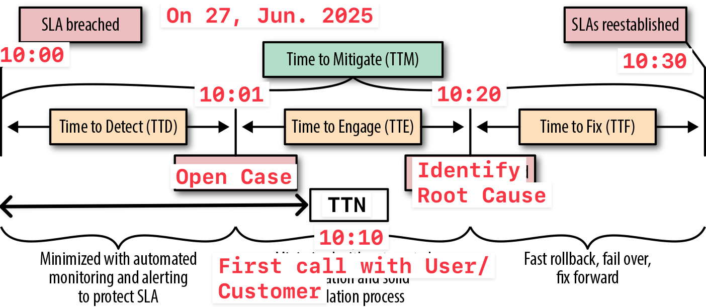 Even of a service with an SLA 99.999%, there is still an allowable downtime of 5 minutes and 16 seconds per year. To clarify the calculation method of the SLA, it is necessary to provide mode detailed metrics for the entire downtime period, and this metric is called TTx (Time to)
