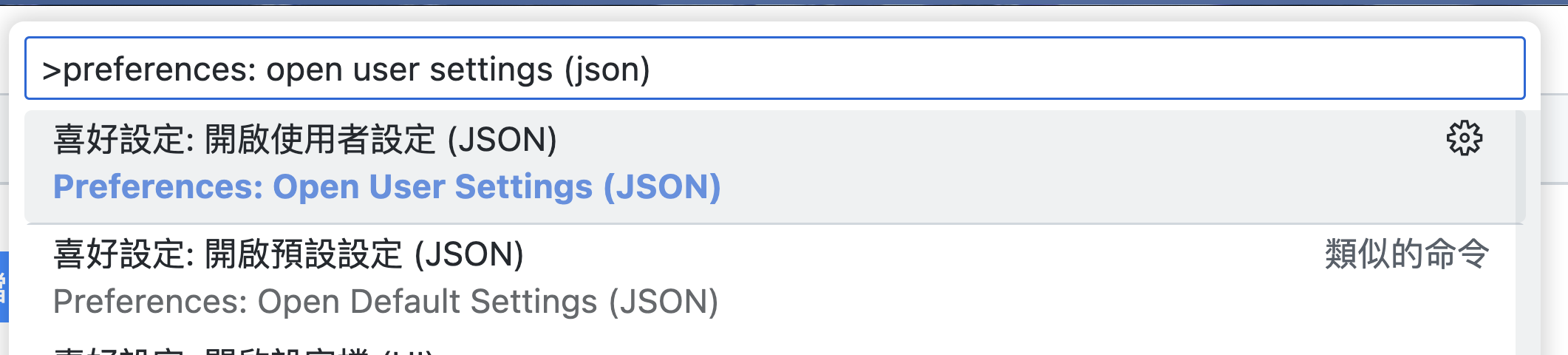 - Type "Preferences: Open User Setting (json)"