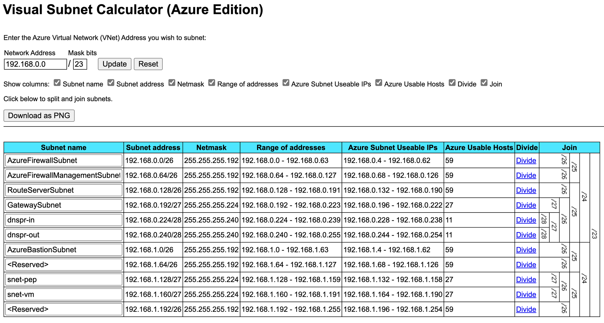 Based on my previously rewritten Virtual Subnet Calculator (Azure Edition), it can be determined that the following common services are placed in the Hub subnet: